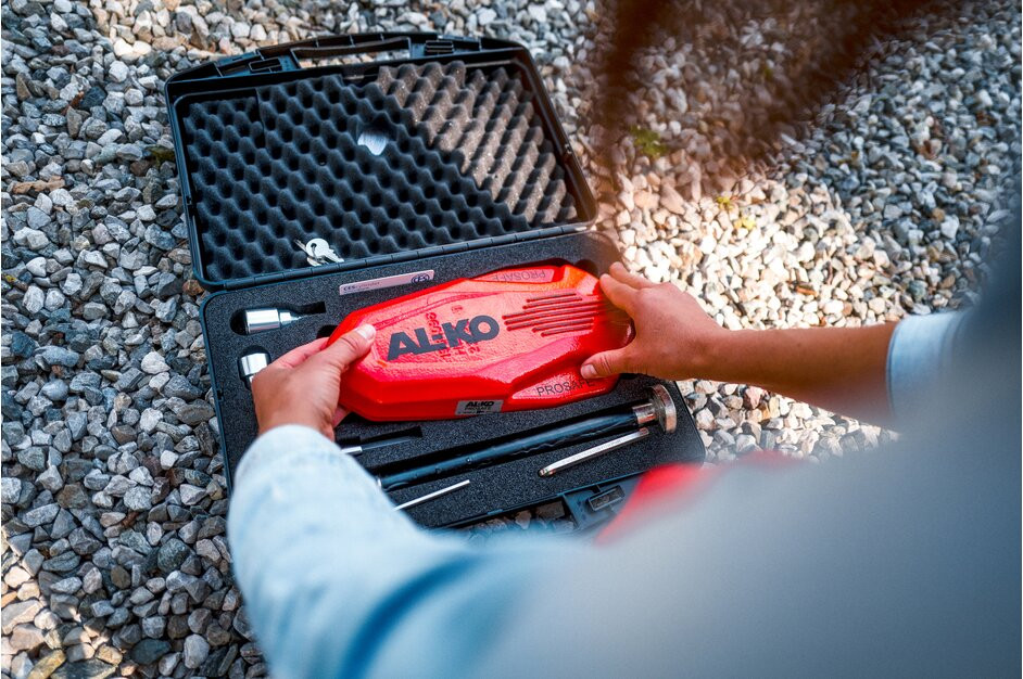 Con pochi gestiti potete montare in autonomia AL-KO PROSAFE. Grazie alla protezione antigraffio e dei contatti dei cerchioni, questi rimangono intatti durante il montaggio. E se la protezione antifurto non è necessaria, la ganascia blocca ruota può essere riposta nella robusta custodia con pratiche funzioni.