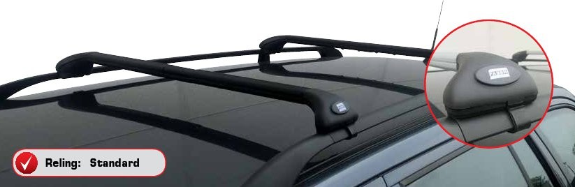 montaggio rapido e comodo su ogni tipo di sezione di barra longitudinale – barre in acciaio particolarmente robusto, zincate internamente ed esternamente e rivestite in PVC atossico – ancoraggio tramite cinghietti e martinetto di regolazione – antifurto – conforme alla norma ISO/PAS 11154:2006