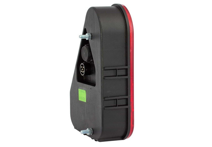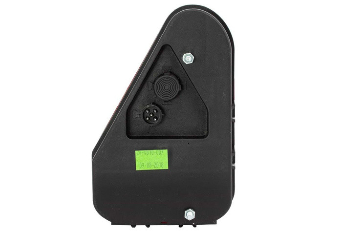 Fanale posteriore destro a lampadina 12V con funzione di posizione, stop, freccia e riflettente triangolare. Versione con connettore 5 poli Aspock.