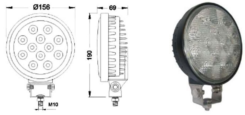 Ø mm. 156 – attacco con perno – corpo in alluminio stagno IP67 – staffe e perno in acciaio inox – 12/24 volts – 12 led da 1 W 12 watt