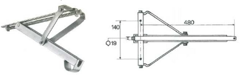 piedino a compasso in ferro zincato – portata kg. 300 – lunghezza piedino cm. 48