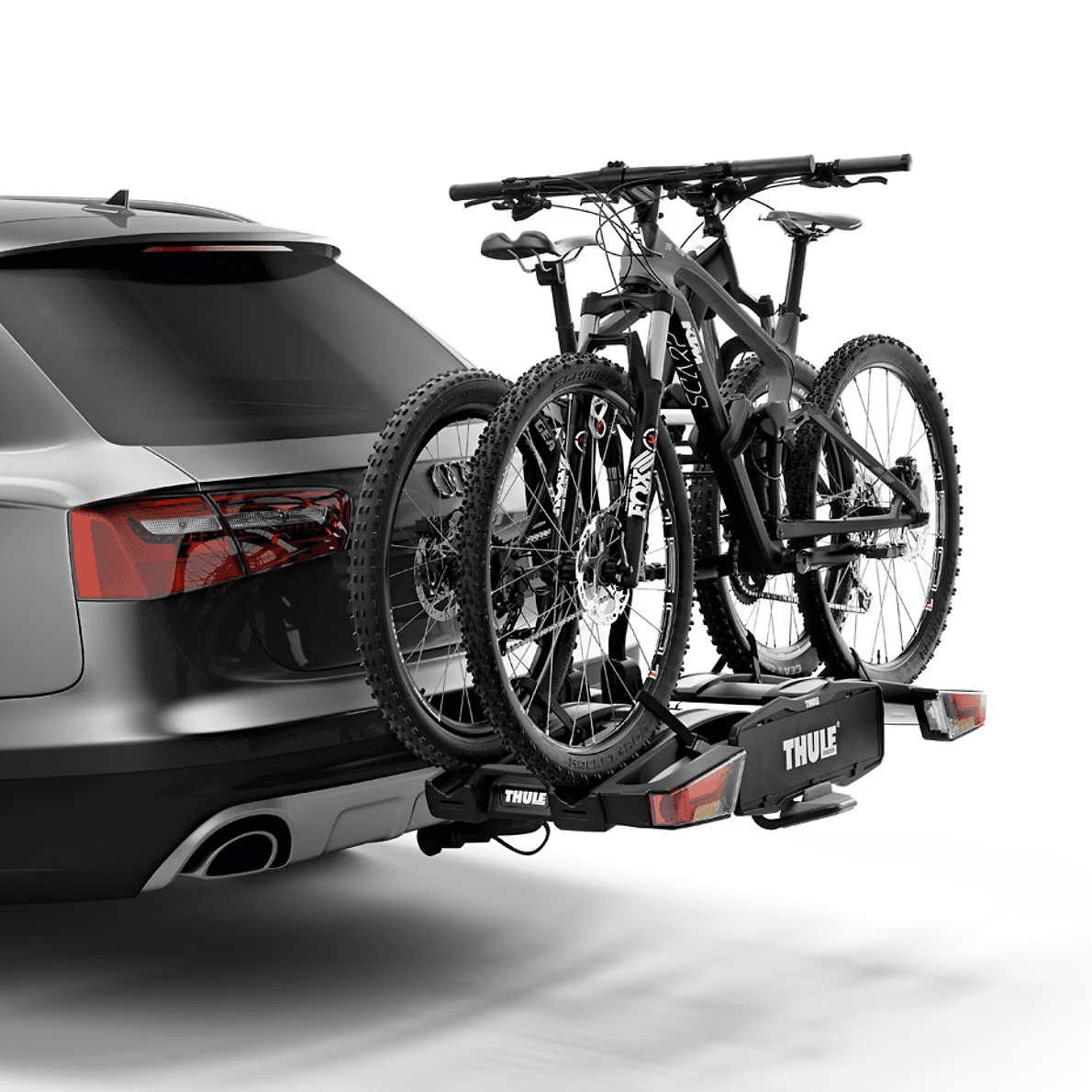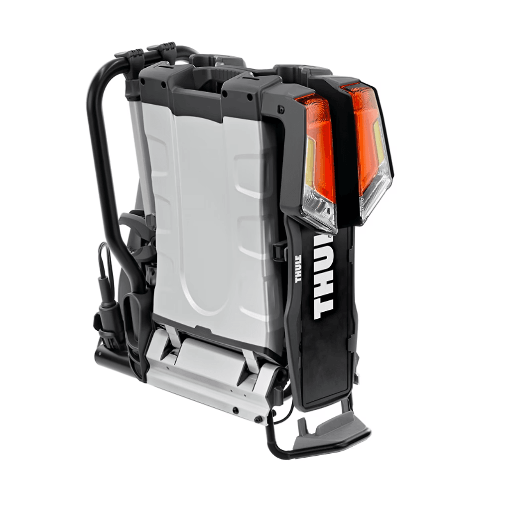 Numero massimo di biciclette: 2 – Capacità di carico: 46 kg – Massima capacità di peso: 24 kg – Peso: 13.4 kg – Per telaio di dimensioni: 22-80 mm – Bloccatelaio amovibile – Distanza tra le bici: 19 cm – Inclinazione (con le biciclette) – Per auto con ruota di scorta esterna – Fari posteriori – Connettore alimentazione: 13-pin – Compatibile con il sistema Thule One Key – Blocca il sistema di portaggio all’auto – Colore: Black/Aluminium