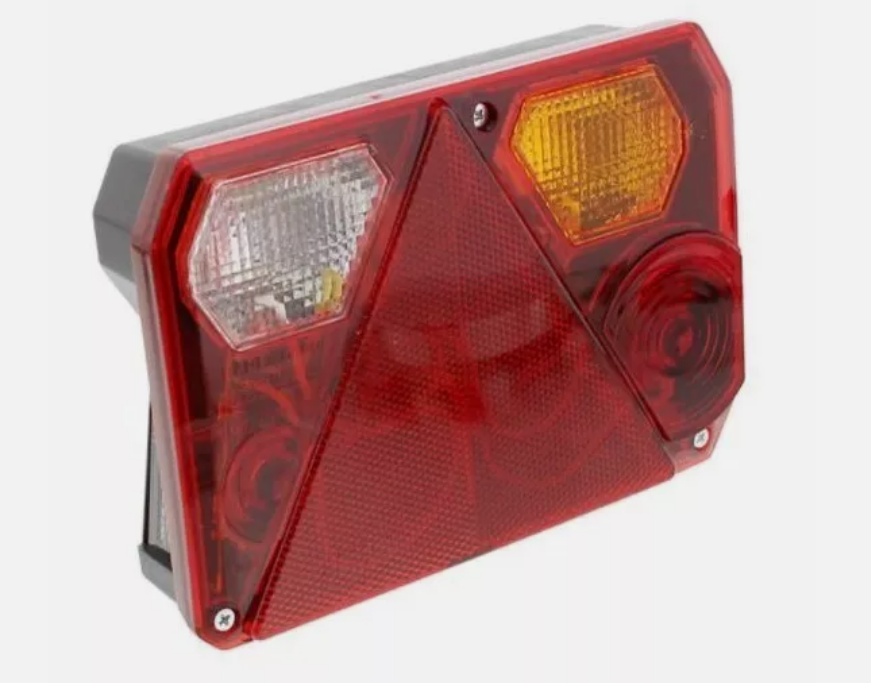 fanale posteriore con retromarcia (posizione stop, direzione, luce targa) – L=mm. 200, H=mm. 140, P=mm. 52, interasse fori mm. 152