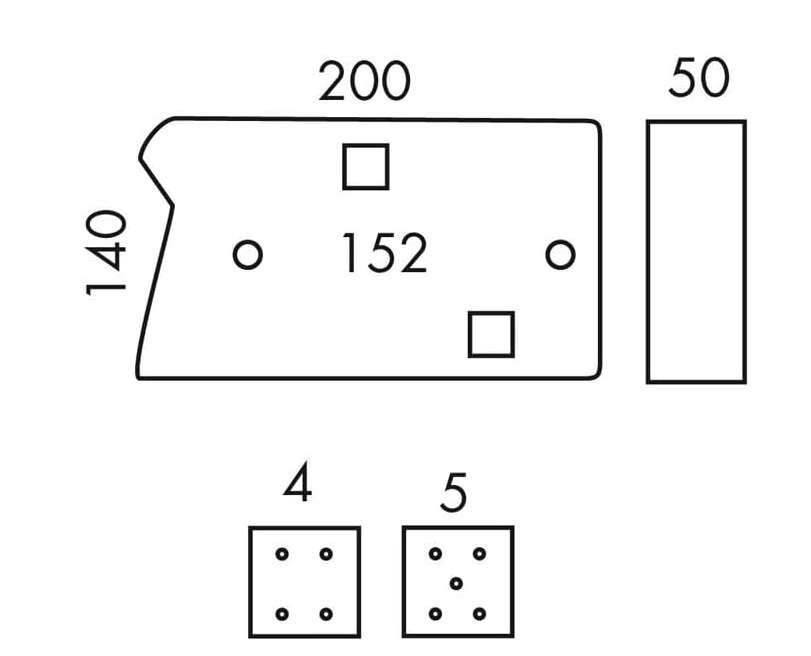 fanale posteriore con retronebbia (posizione stop, direzione, luce targa) – L=mm. 200, H=mm. 140, P=mm. 52, interasse fori mm. 152