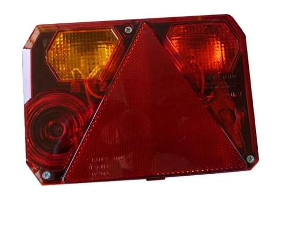 fanale posteriore sx con retronebbia (posizione stop, direzione, luce targa) – L=mm. 200, H=mm. 140, P=mm. 52, interasse fori mm. 152