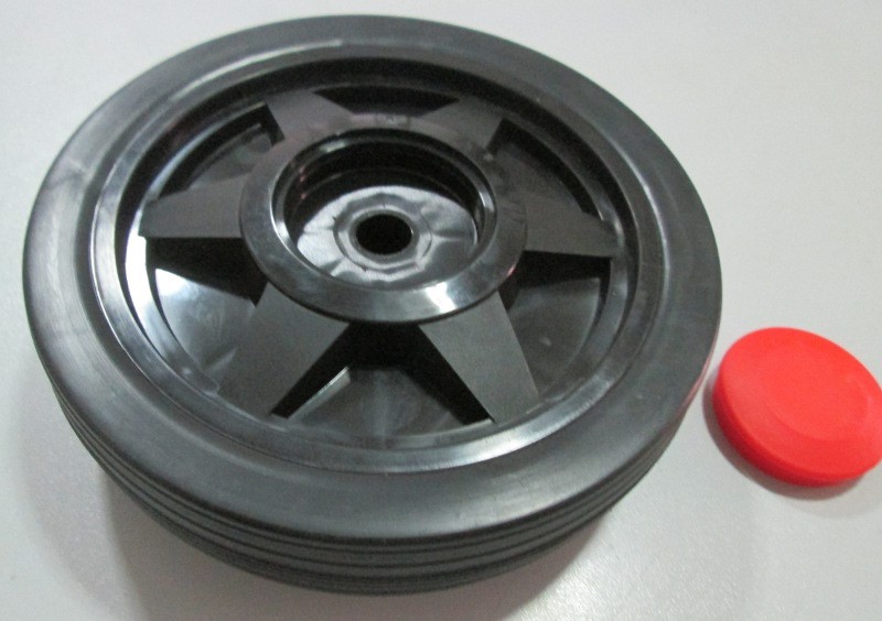 ruota gommata con disco in plastica e tappo ferma ruota, indicata per portate medio basse con tappo copri mozzo.