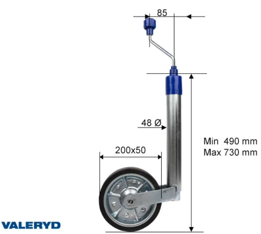 Ruotino telescopico 48mm con ruota 200×50 portata 300Kg