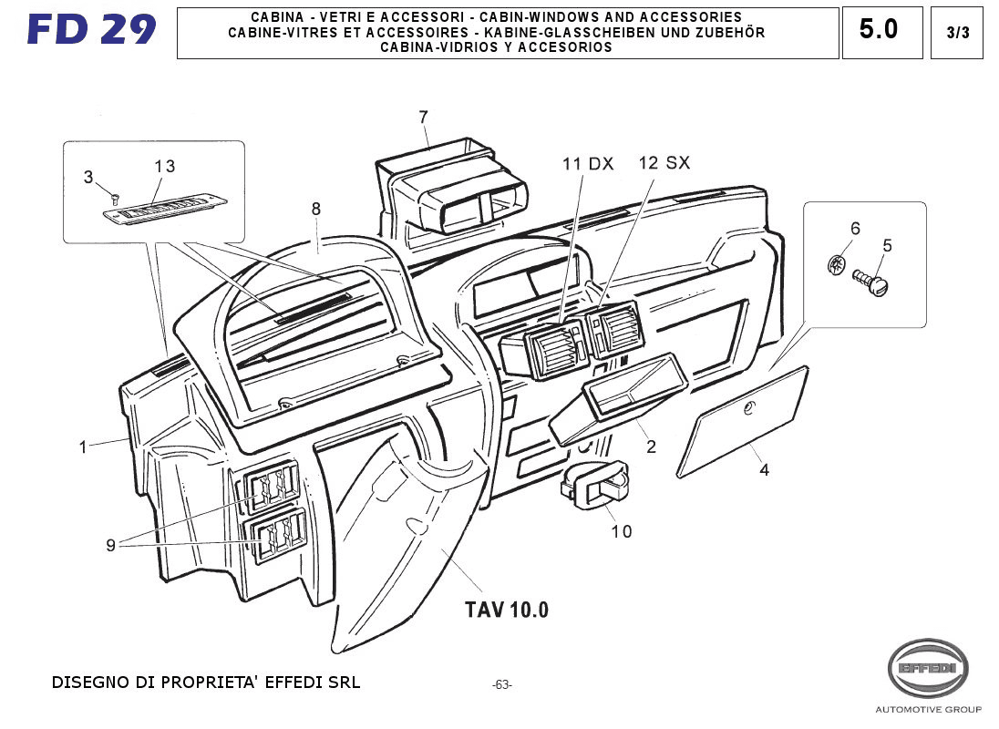 Tav. 5.0 3/3 – Cabina – Vetri e accessori