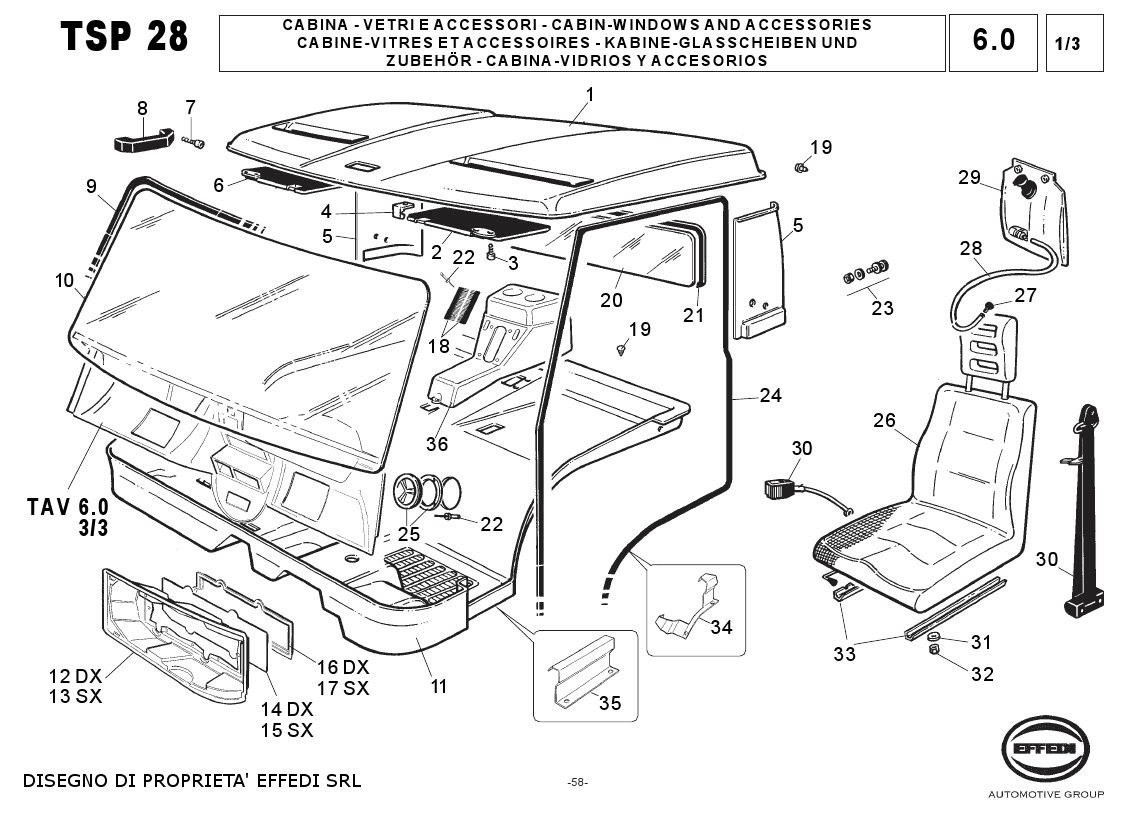 Tav. 6.0 1/3 – Cabina – vetri e accessori